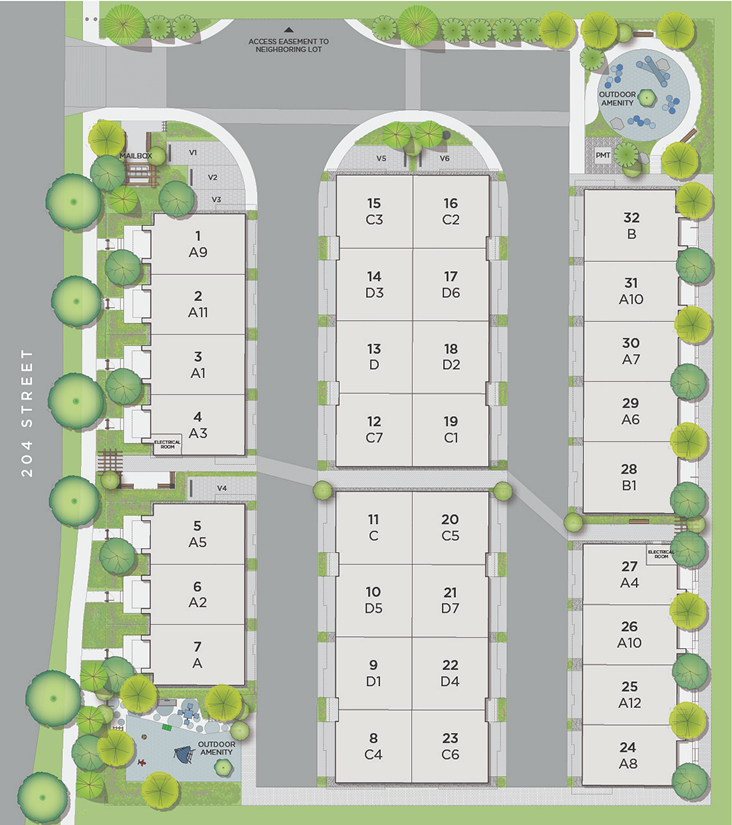 A space that welcomes you from the outside, is one that invites you inside.Thoughtfully envisioned by DF Architecture, the homes at Park Avenue are modern in style, but timeless in construction. Designing with purpose in mind, their homes are both beautifully formed and highly functional.These townhomes, with their striking linear designs set in contrast against lush green spaces, offer an exciting and welcoming new addition to the Willoughby community.